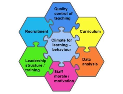 In terms of piecing together the ‘jigsaw’ of school improvement, we believe that the following areas are of critical importance. In the most successful (category 1) academies, leaders have the capacity to address these areas with minimal external support or intervention; in category 2 or 3 academies, external input will be required to ensure that these areas are being considered and addressed.